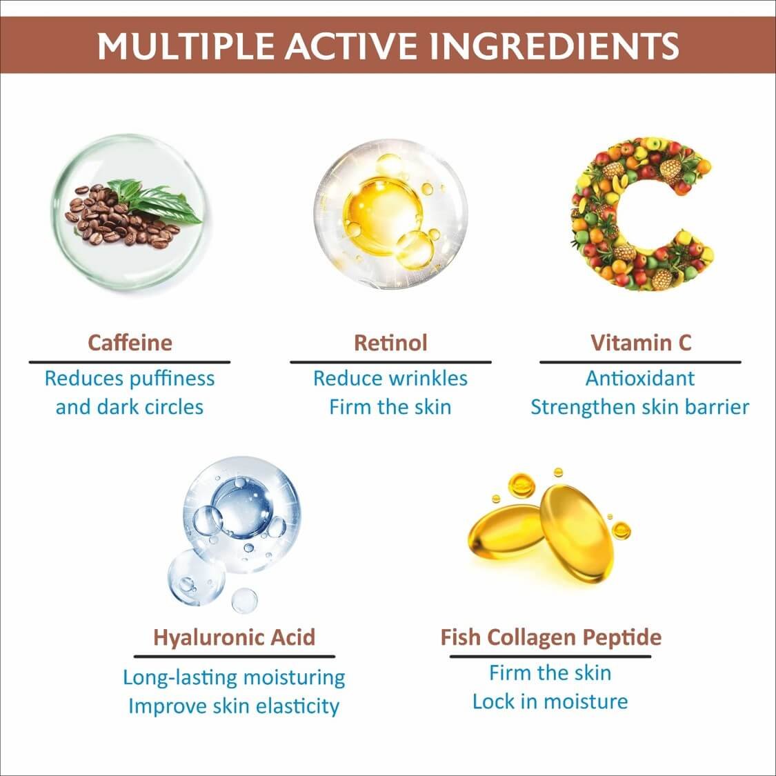 - Caffeine – Boosts circulation & reduces darkness