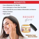 Bright Glow Saffron Moisturizer Cream deeply hydrates your skin while giving a refreshing cool effect. Enriched with saffron extracts, it helps improve skin brightness, smooth texture, and provide a natural glow with regular use.